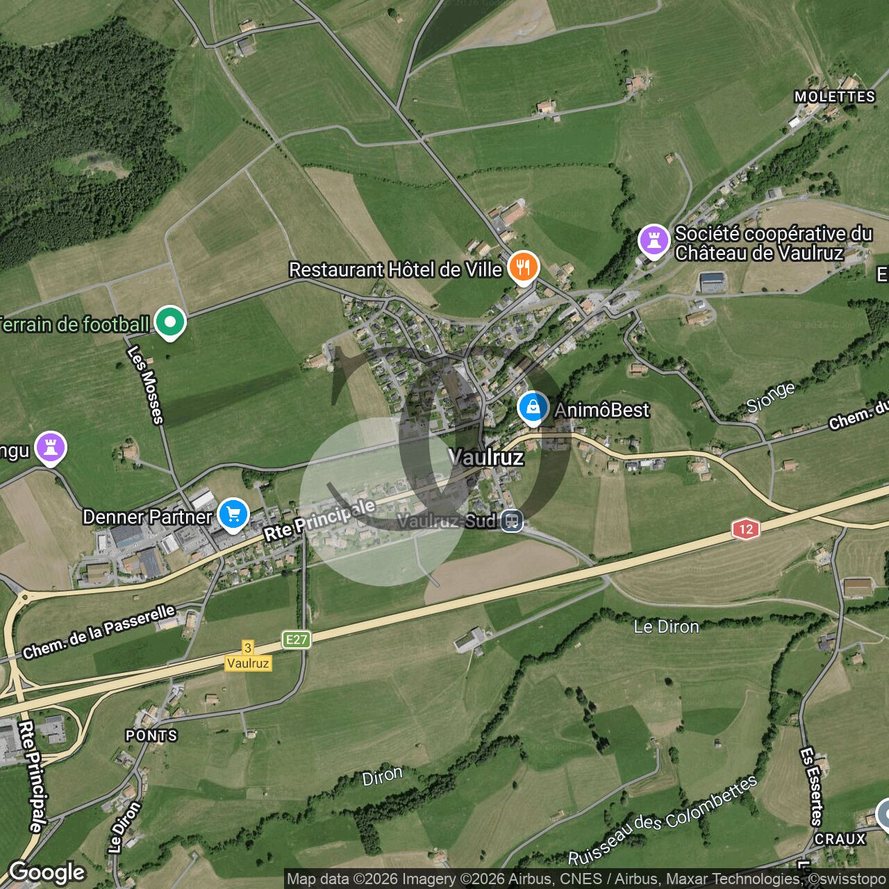 Localisation stratégique à proximité immédiate de l’Autoroute A12, avec connexions rapides vers Bulle, Fribourg et la Riviera.